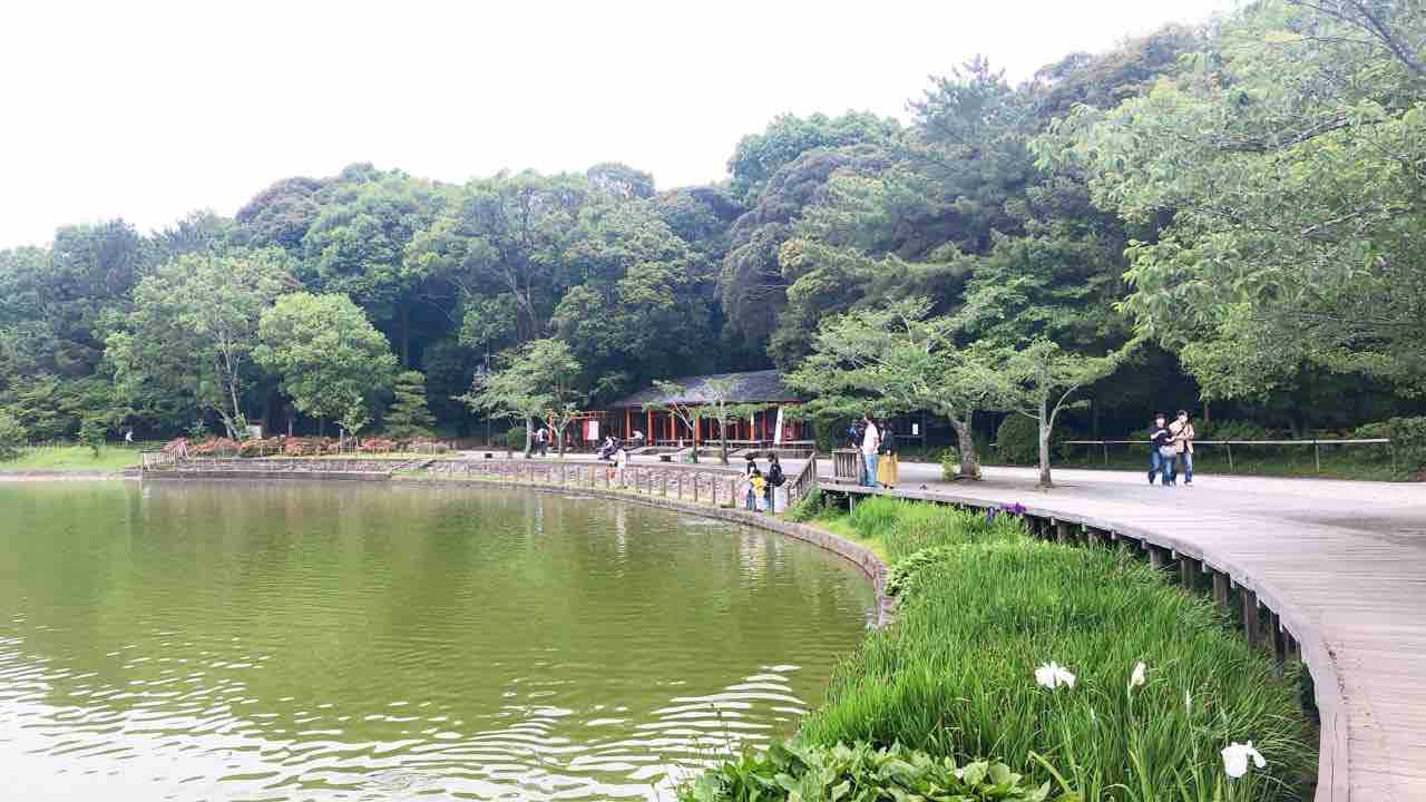 橿原神宮拝殿で世界の平和を祈った後はこちらの長山稲荷社にも参拝されることをおすすめします。深田池は周囲をぐるりと一周することができるので、お散歩も楽しめますよ。