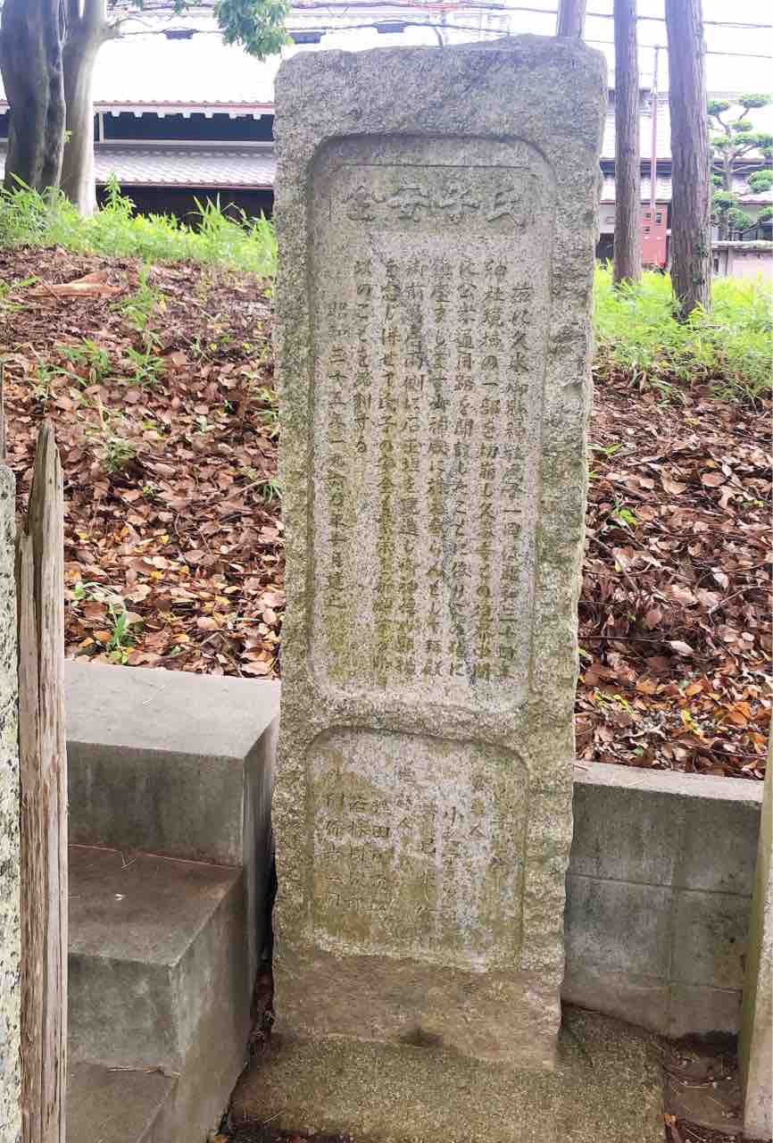 手水舎はありましたが、使われていない様子でした。境内には石碑が建てられていました。神社の歴史について書かれているよう。
