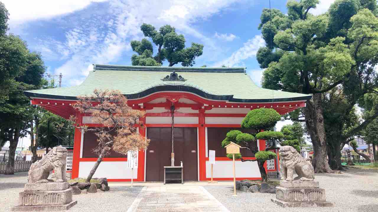 境内には堺市指定保存樹木にも指定される楠木が生い茂っていました。こちらが本殿です。ご祭神は2柱で、農耕・鍛冶・武運の神様『八幡神』と厄除開運・病気平癒の神様『素戔嗚尊(牛頭天王と同一だと考えられています)が祀られています。