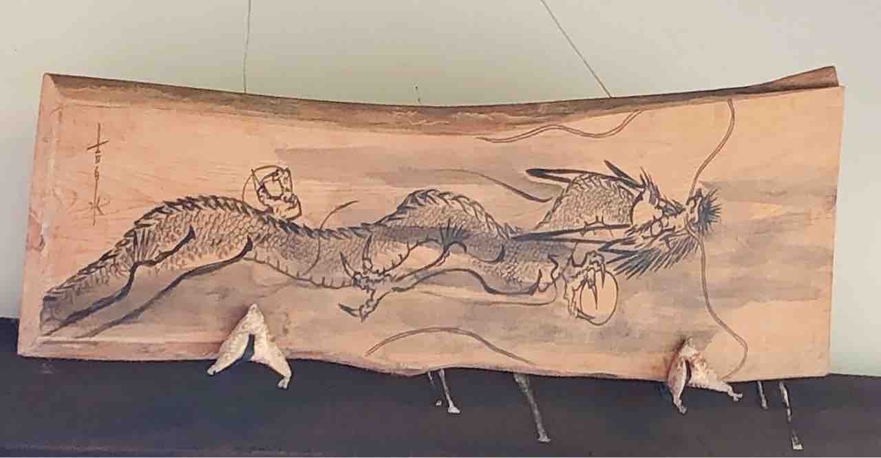 拝殿の内側には龍神と天女と思われる姿絵が掛けられていました。