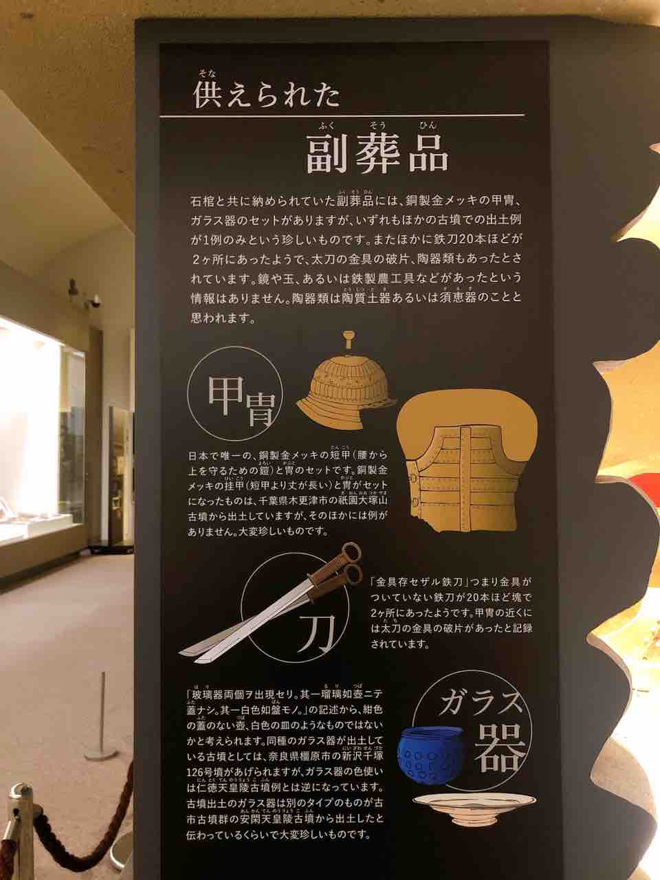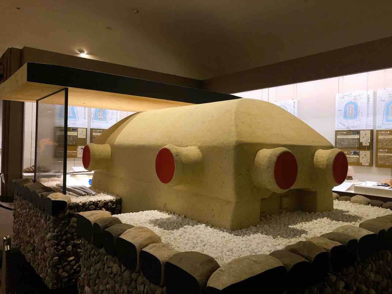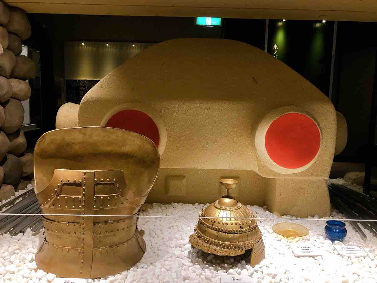 これは仁徳天皇陵から出土した石棺・石槨の復元模型だそうです。副葬品である兜や甲冑などのレプリカも展示されていました。