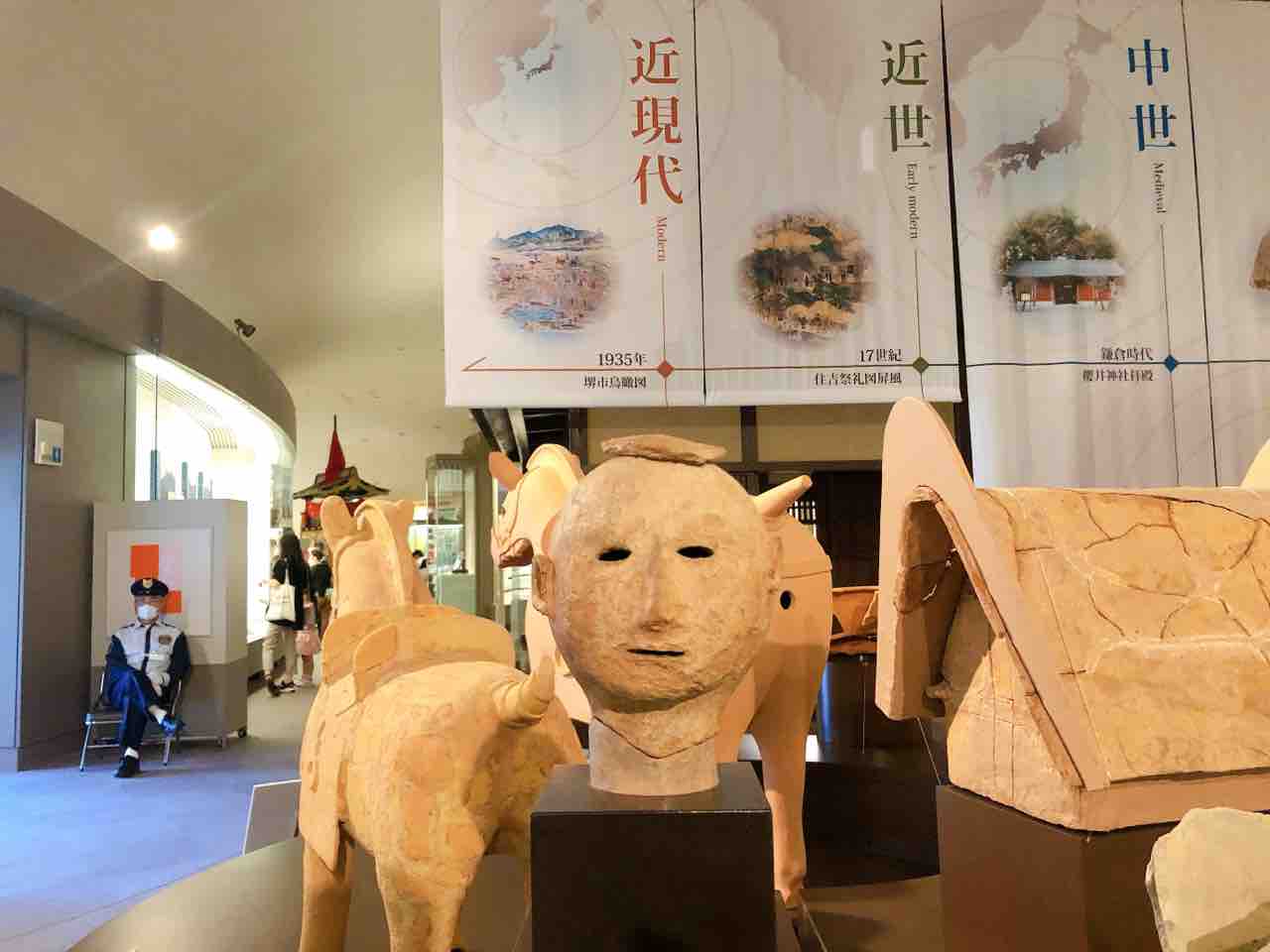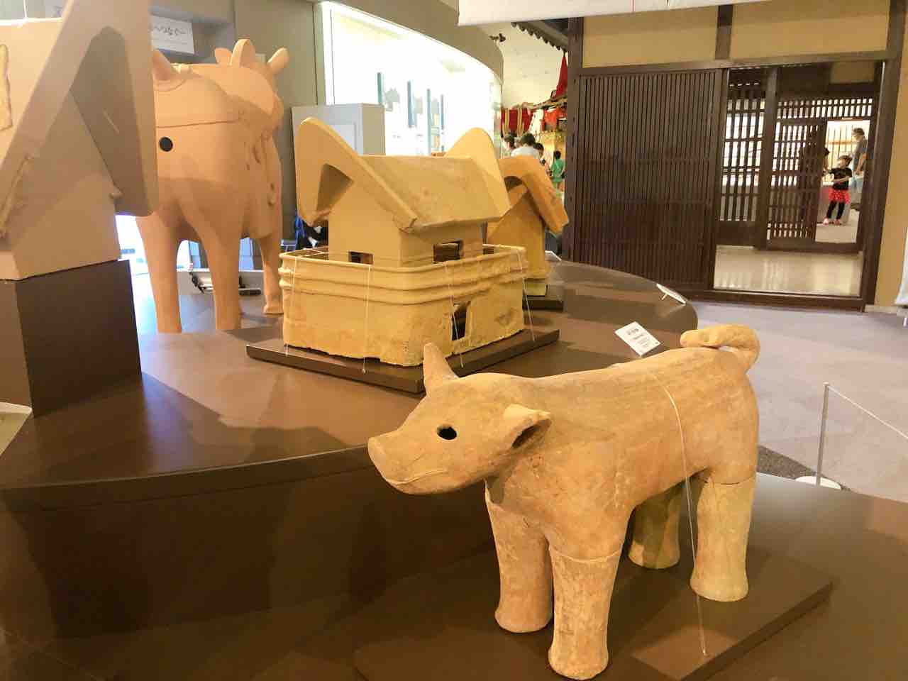 古代常設展示エリアでひと際目を惹いたのはこれらの形象埴輪でした。馬形埴輪の復元模型は国内最大規模だそうです。