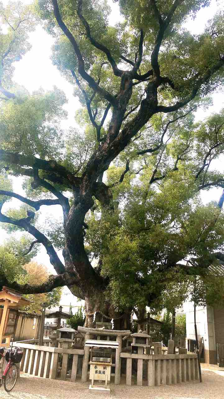 参道(駐車所)付近には思わず足を止めて見入ってしまう程大きな楠があります。樹齢は千年を超えていて、大阪府指定天然記念物に指定されているそうです。