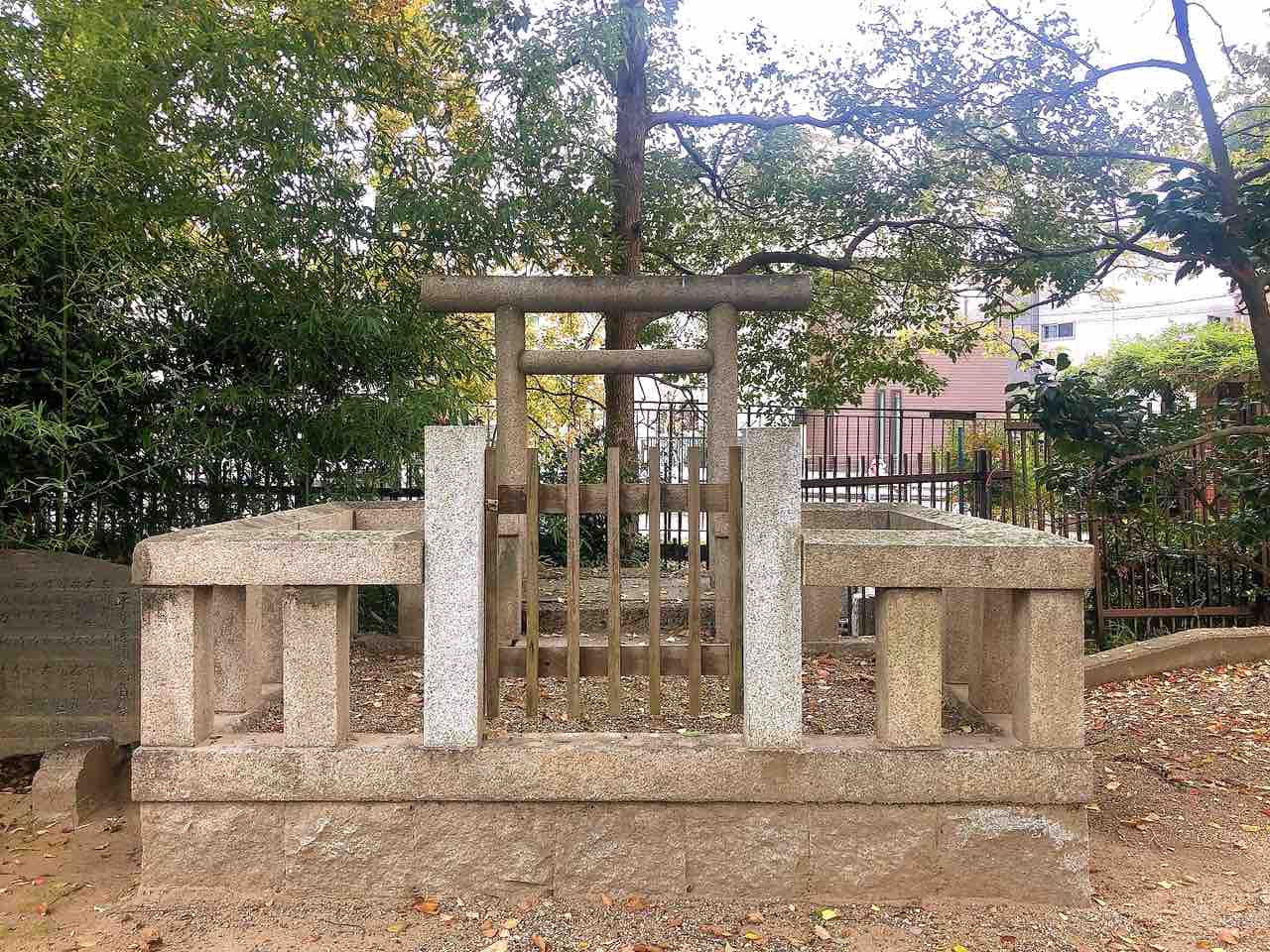 神社境内までは長い参道が続いています。参道の始まり付近に杭全公園があり、その隣に弁天池があります。
