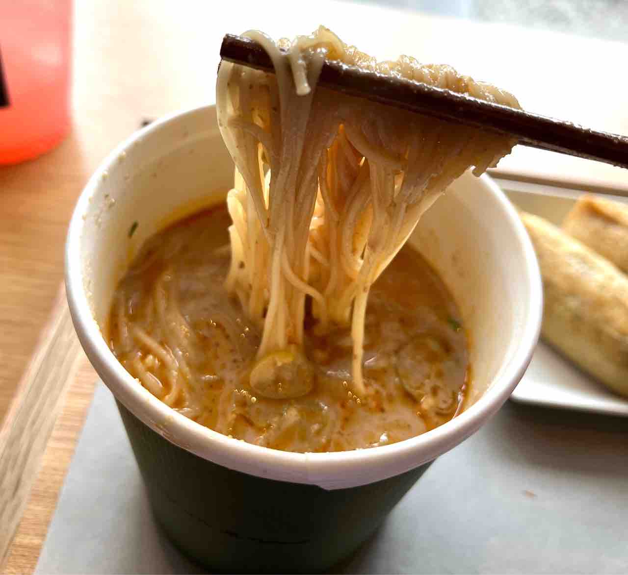 素麺はラー油とごまが入っていてちょっぴり中華風でした。今までに食べたことのない味の素麺で、新鮮で美味しかったです。素麺は化学調味料・保存料が無添加で身体に優しいのが特徴のようです。