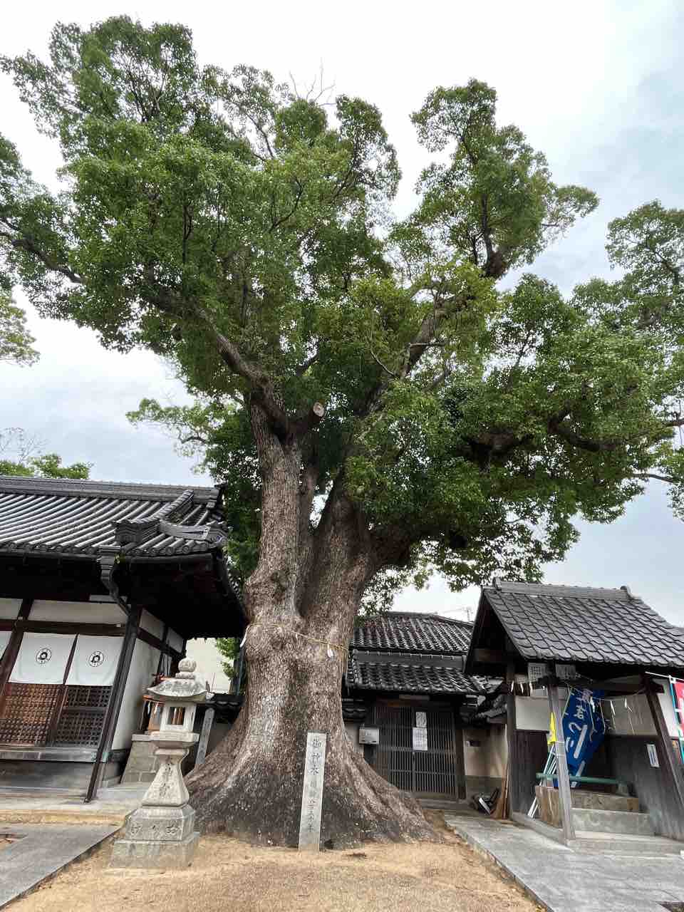 現在の拝殿は1804年に建てられたものだそうです。拝殿横には大きな楠が植わっていました。