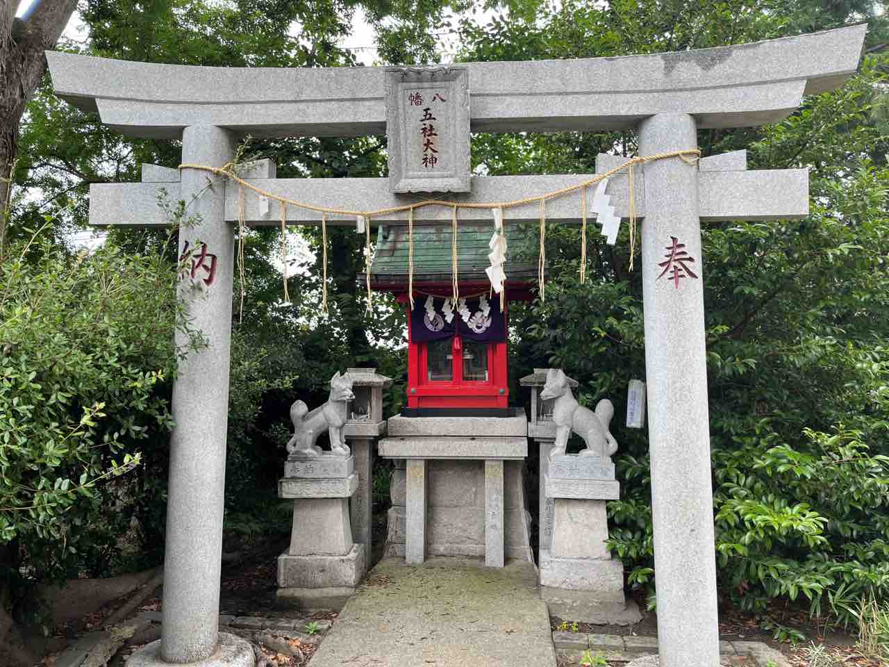 摂社には宇迦御霊神が祀られた稲荷社も。五社大神と書かれています。