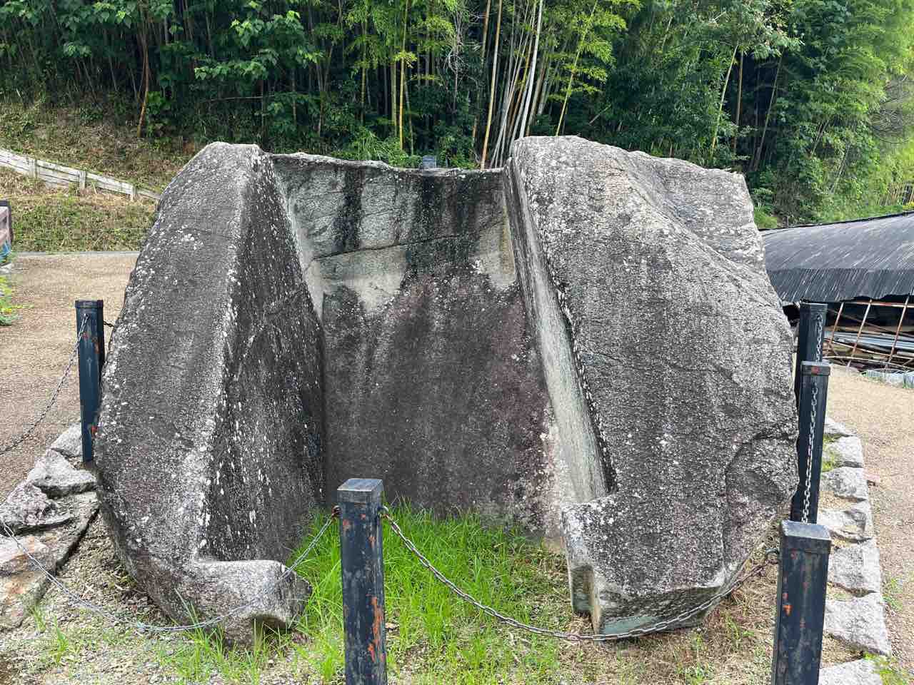 7世紀後半の古墳時代終末期の石室の一部と言われています。風の森に位置する爼が底石、雪隠が蓋石にあたるそうです。欽明天皇陵の石室の一部だという説もあるそう。