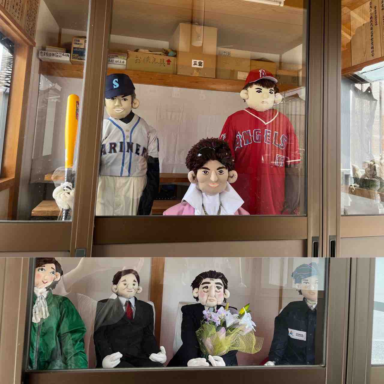 境内には著名人を模した案山子の姿も。特徴を捉えていて誰なのかすぐ分かりました。高取では毎年10月になると1か月間、『かかし祭り』が開催されています。