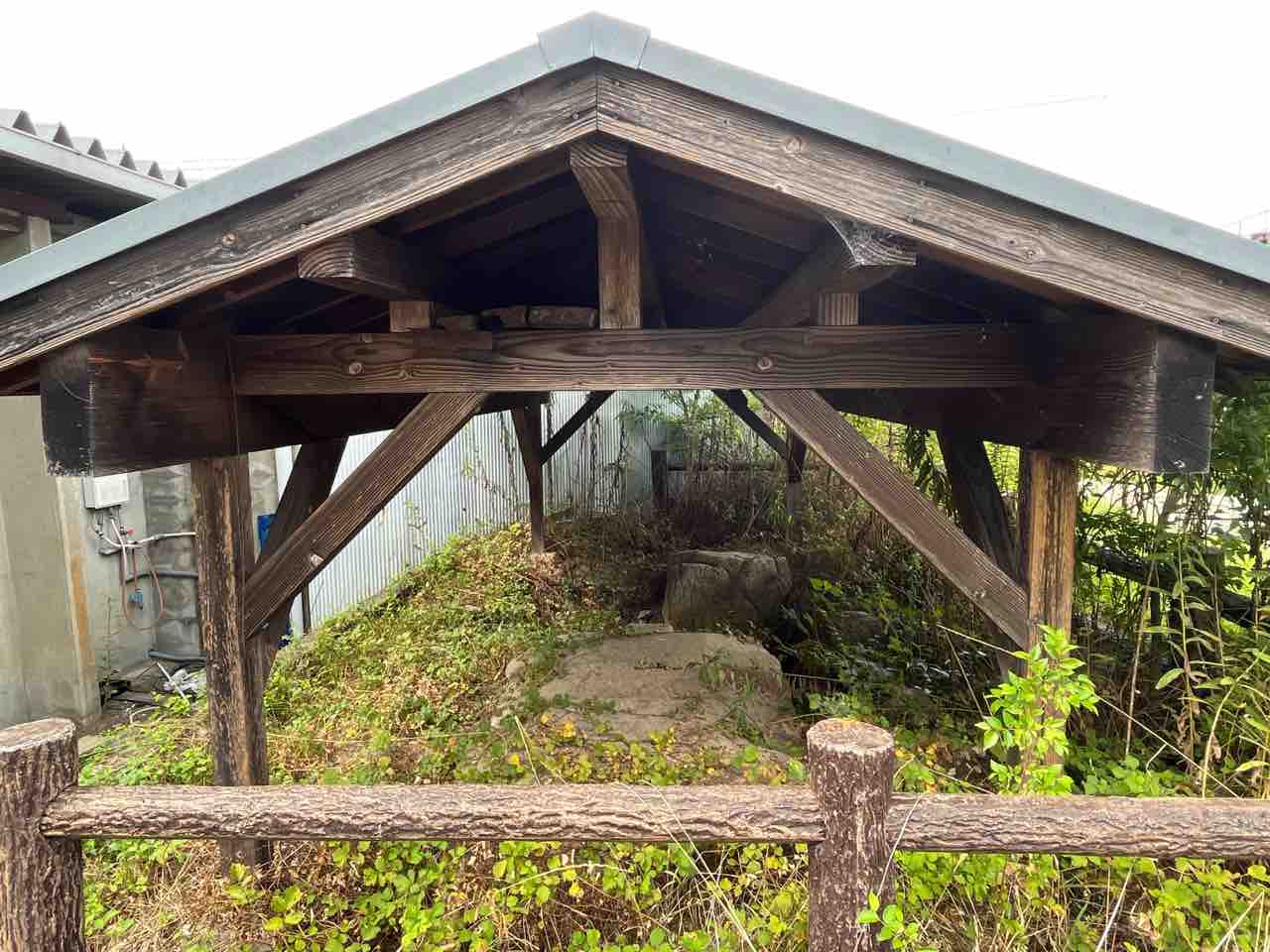 案内板の後ろに屋根と柵に囲まれた場所があったので近づいてみました。