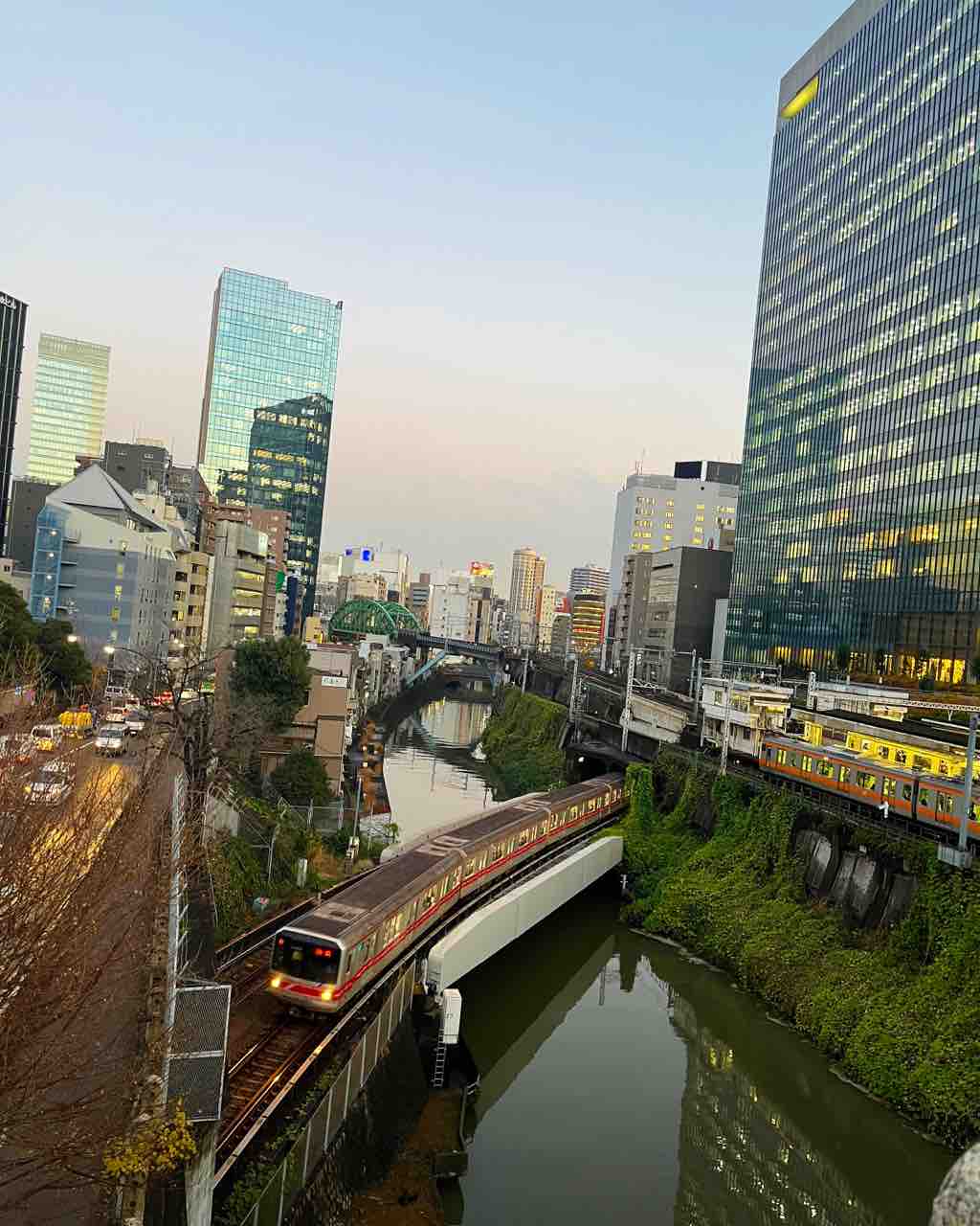 神田明神に参拝する前に御茶ノ水駅を出てすぐのところにある聖橋(ひじりばし)で写真を撮りました。『すずめの戸締り』終盤に登場する橋で、すずめが飛び降りた場所です。ちょうど電車が通り過ぎました。