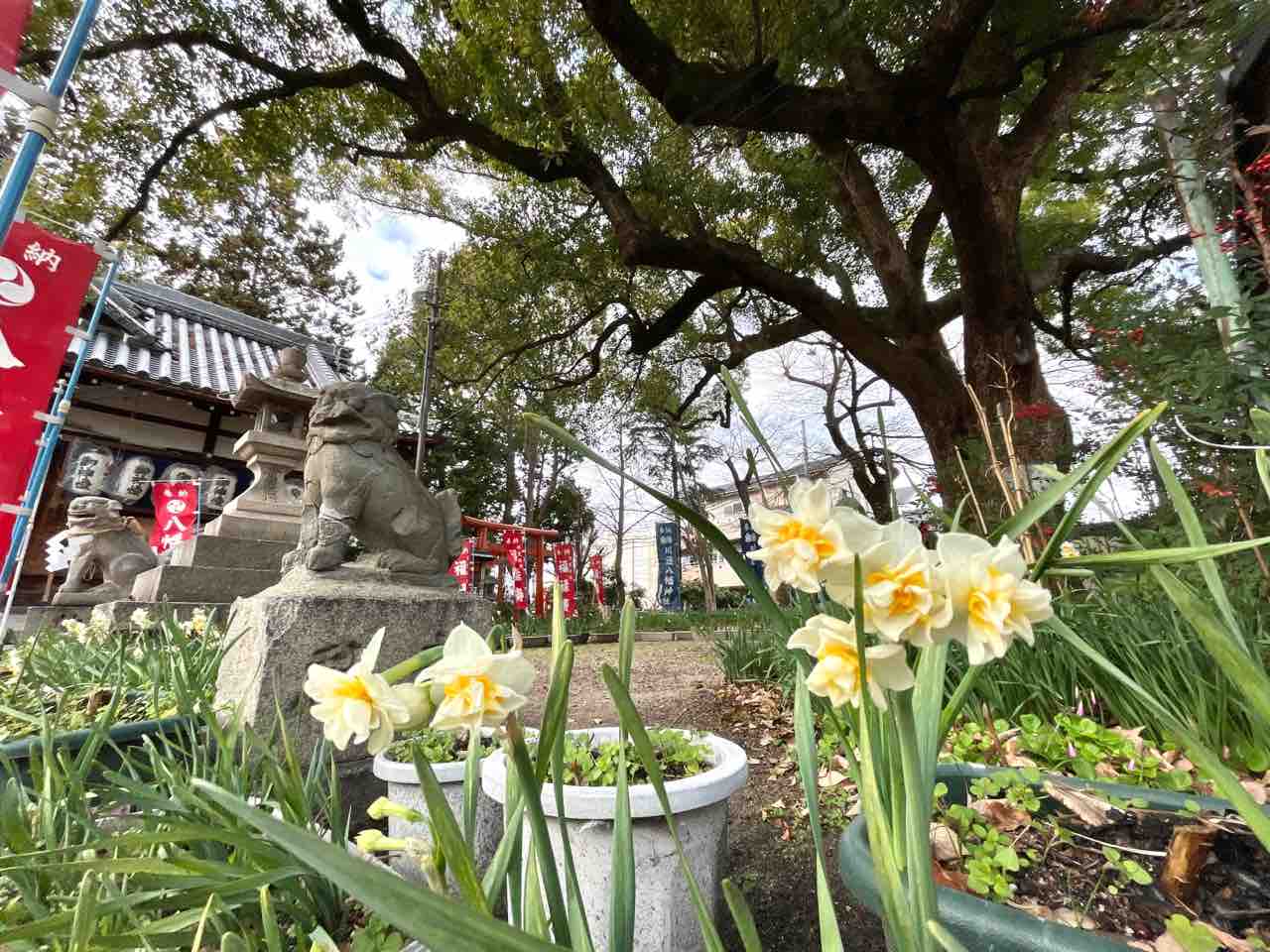 1月上旬に訪れましたが境内にはたくさんの水仙が植えられていて良い香りが漂っていました。