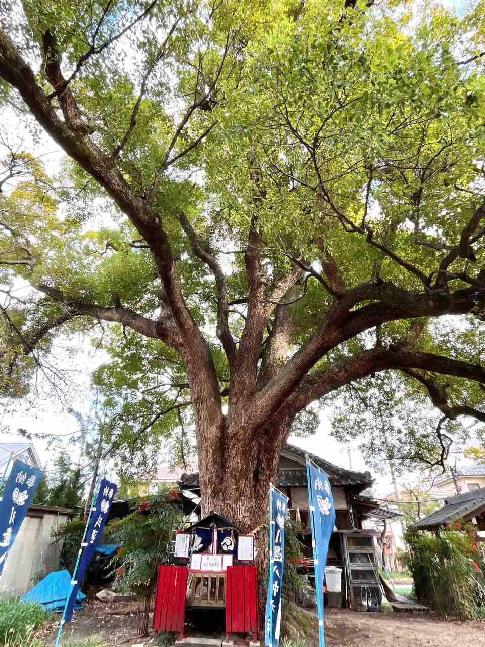 境内に入った時にまず目を引いたのがこちらの大きな楠でした。樹齢300年以上で大阪市の保存樹に指定されているとのことです。
