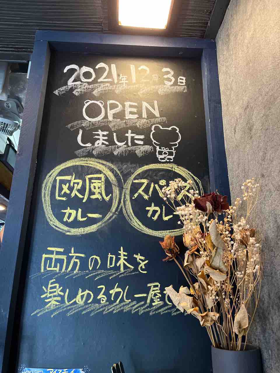 2021年12月にオープンしたようです。欧風カレー・スパイスカレー両方楽しめるのが売りのよう。ランチは11時から14時でディナーが17時半から20時半、お休みが日曜祝日で水曜はランチ営業のみのようです。