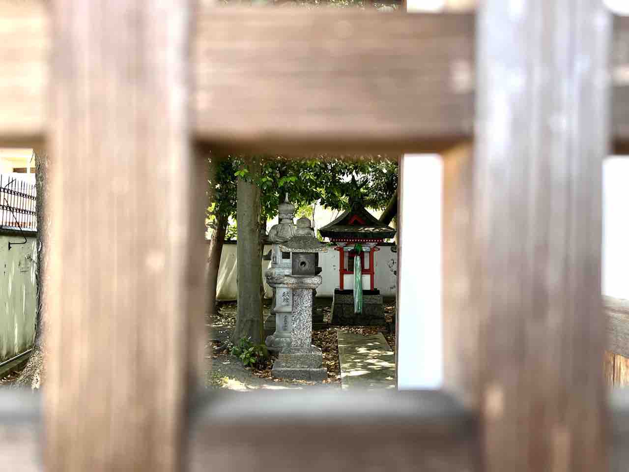 中を覗いてみると祠が置かれていました。手前の石灯籠には『五十狭斧彦命』と書かれていたのですが、調べてみたところ吉備津彦命のことのようです。