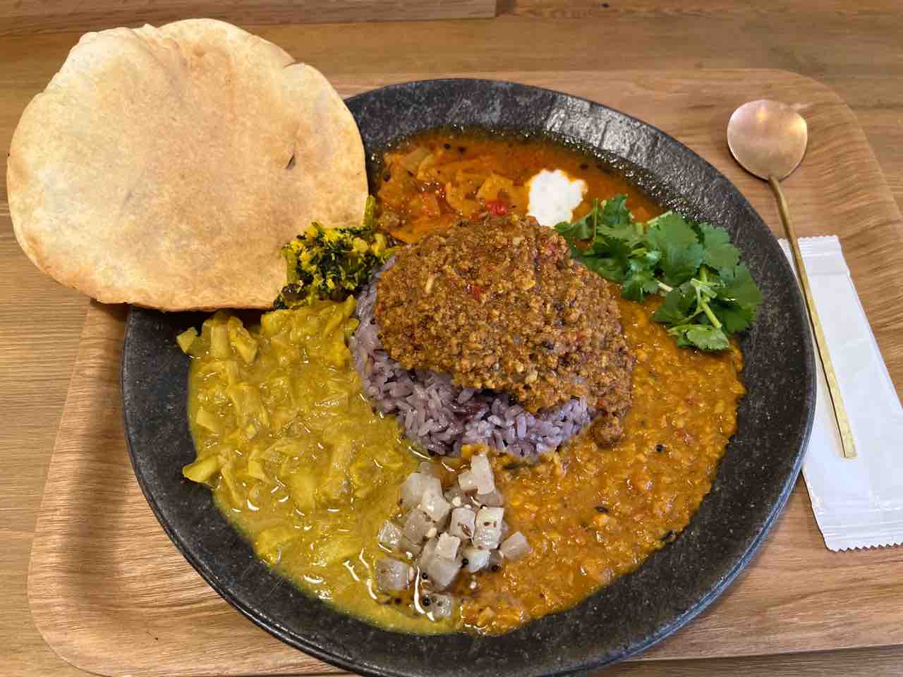 4種がけカレーをいただきました。そのまま別々に食べても混ぜても美味しかったです。
