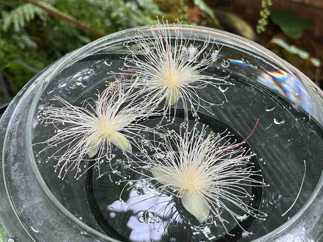 以前西表島で夜のジャングルを探検した時に見たサガリバナという花がたくさん咲いていました。