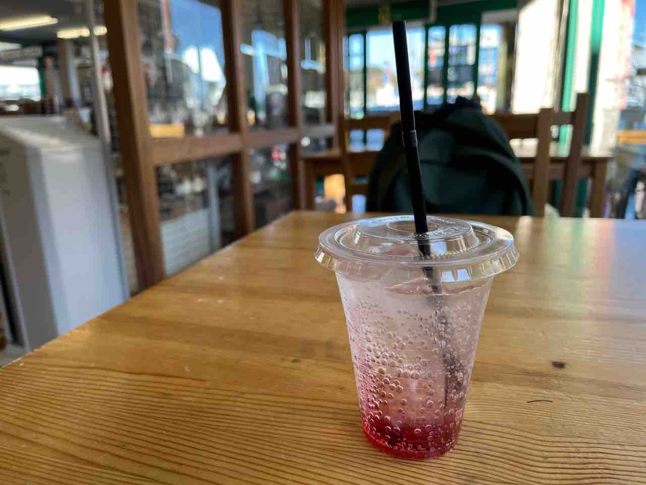帰りの電車を待っている間、土産物屋内にあるカフェスペースで休憩しました。