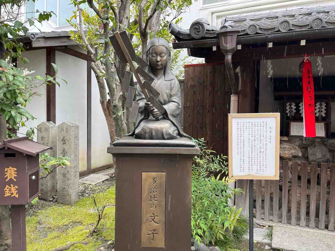 多治比文子さんのことは本で読んで以前から知っていたので、文子天満宮は訪れてみたい神社の一つでした。ちなみに北野天満宮の境内にも摂社として文子天満宮が祀られているようです。北野天満宮はまだ参拝したことがないので、そちらにもいつか行ってみたいと思います。