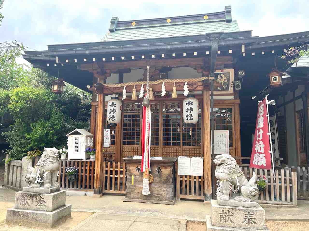 疎開道路という道路沿いを走っていると、生野大通りと看板が出ている商店街があったので立ち寄ってみました。商店街の一角に御神輿が飾られているのを発見し、近くに神社があるのか探してみたところ生野八坂神社を見つけました。
