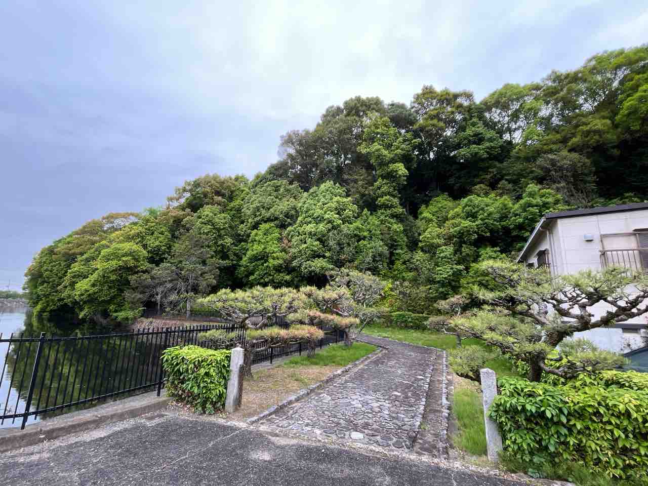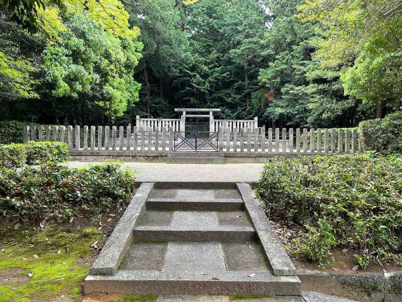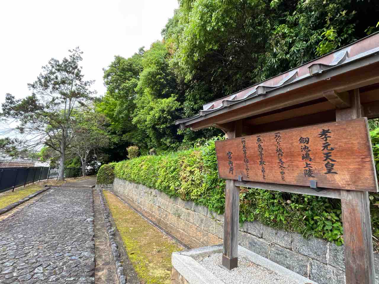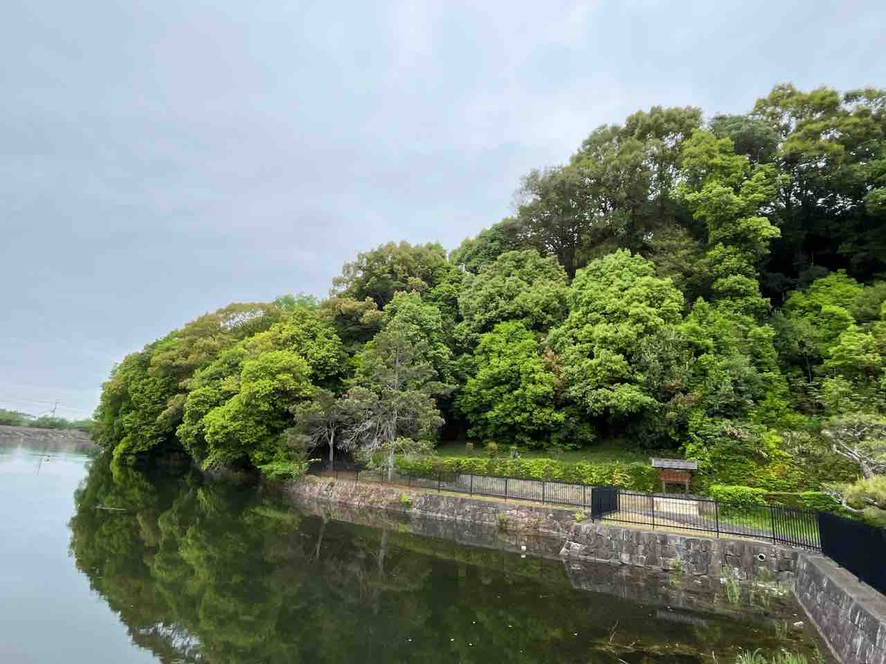 植山古墳公園を出て自転車で5分ほどのところにある孝元天皇 劒池嶋上陵に到着しました。周囲には池がありました。陵墓は宮内庁管理のようです。