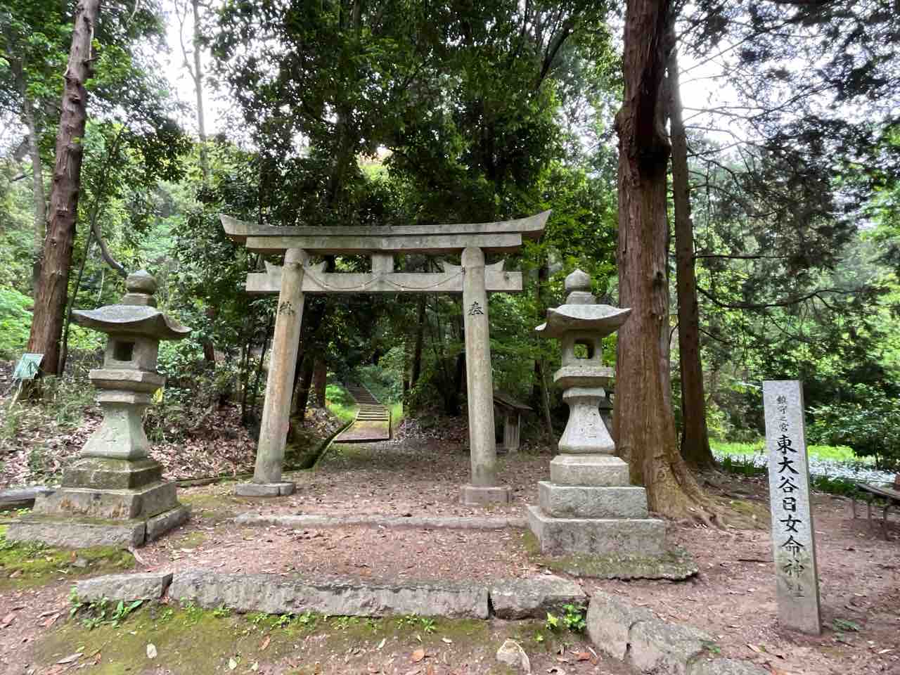 登山口から5分ほど歩いたところに東大谷日女命神社が鎮座しています。延喜式神名帳に名前を連ねる式内社で、橿原神宮のご祭神・神武天皇の皇后である媛蹈鞴五十鈴媛命がご祭神です。
