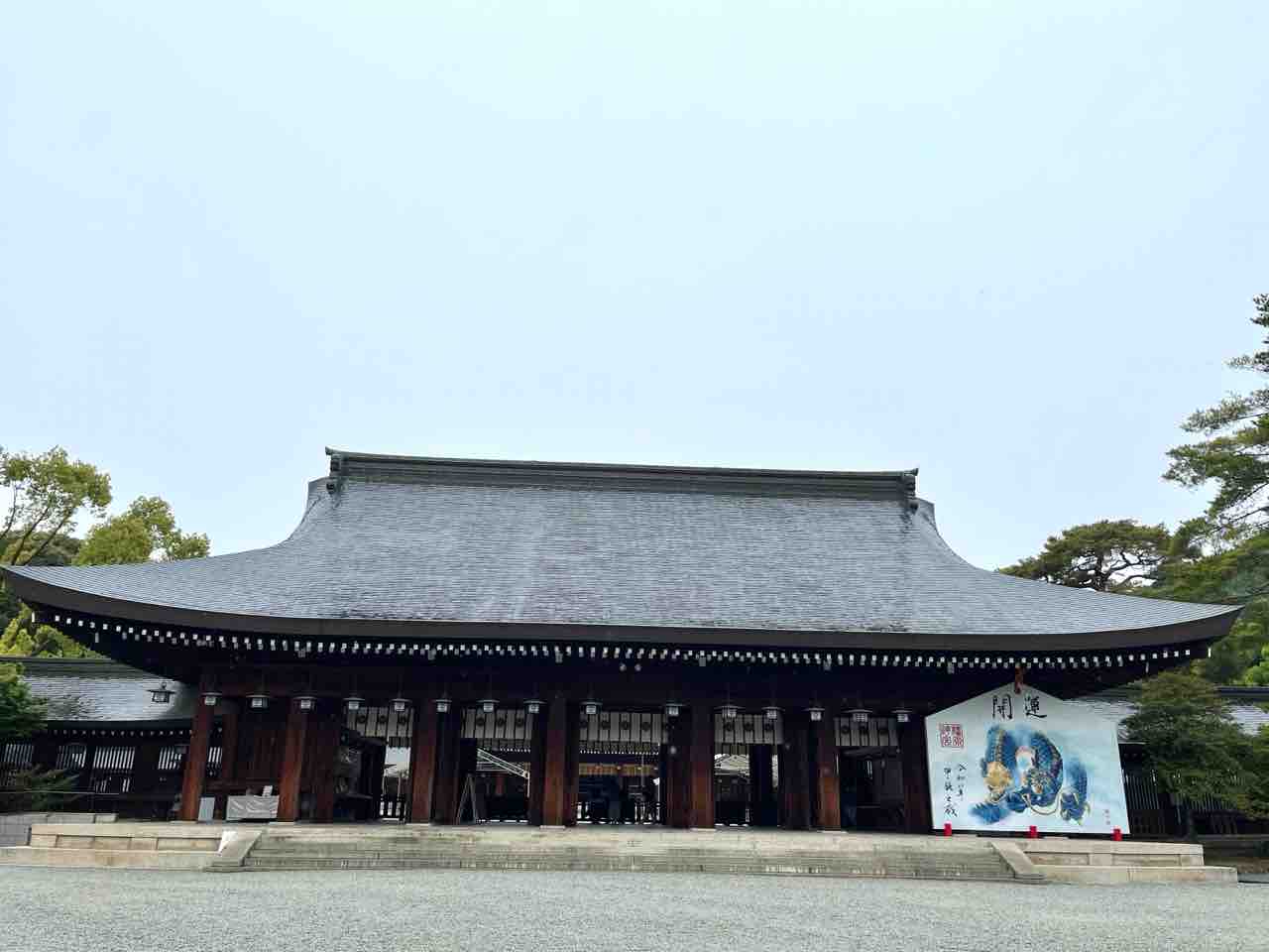この日は拝所脇の通常立ち入ることができないエリアが開放されていて、神武天皇の人生が紹介されていました。