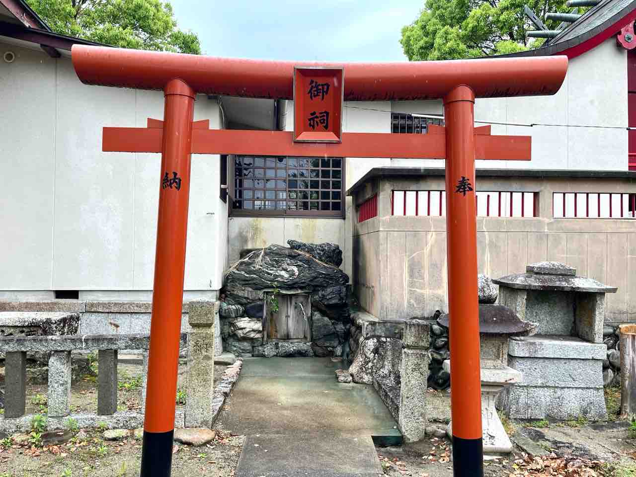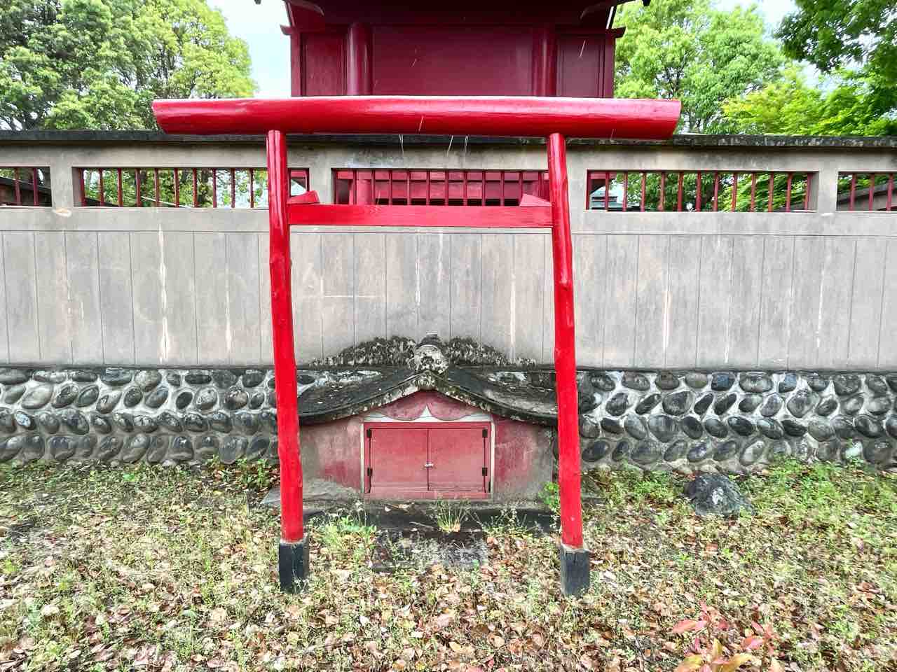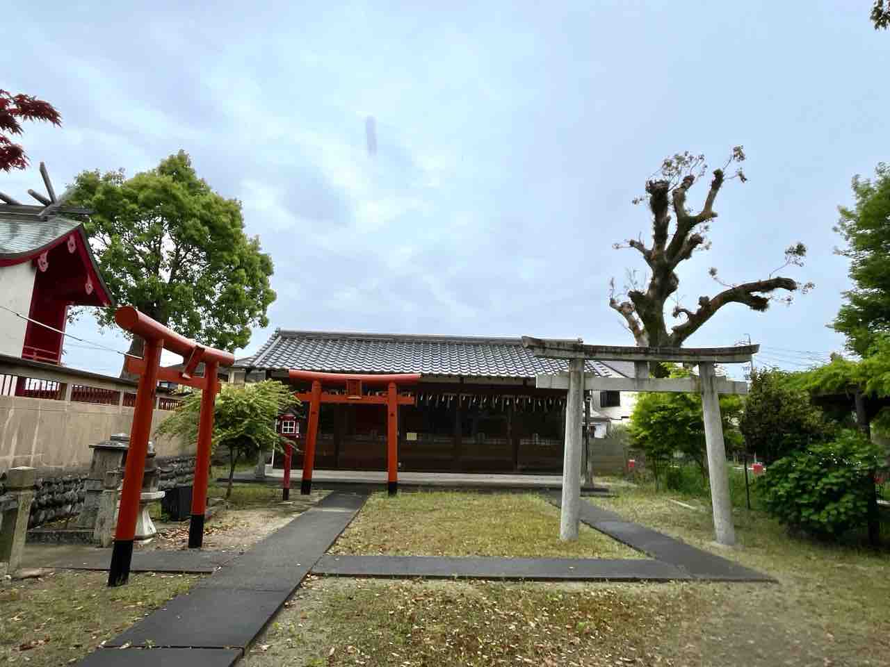 拝殿右奥の鳥居の先には境内末社5社が並べられていました。縁結びや家内安全、健康長寿などにご利益のある様々な神様が祀られているようです。