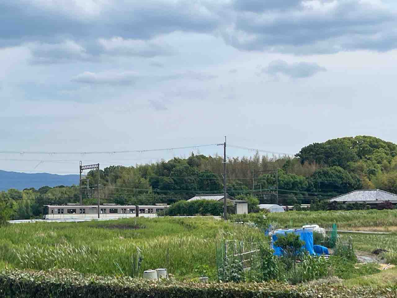 古墳周辺には橘の木が植えられている場所もありました。のどかな田園風景が広がっていて時折電車が走る様子が眺められる場所に造られた古墳です。