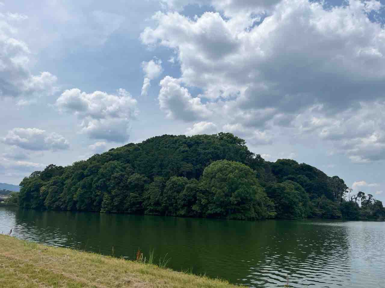 駅に着く直前に大きな古墳が見えていたのでまずはそちらに行くことに。垂仁陵古墳(宝来山古墳)という古墳時代初期に築造された全長227mの前方後円墳だそうです。垂仁天皇の陵墓と指定され宮内庁に管理されているようです。