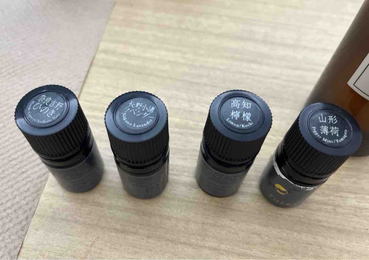 私が選んだのはこちらです。睡眠前にリラックスできるような香りになるよう選びました。アロマオイルの知識はないので適当です。