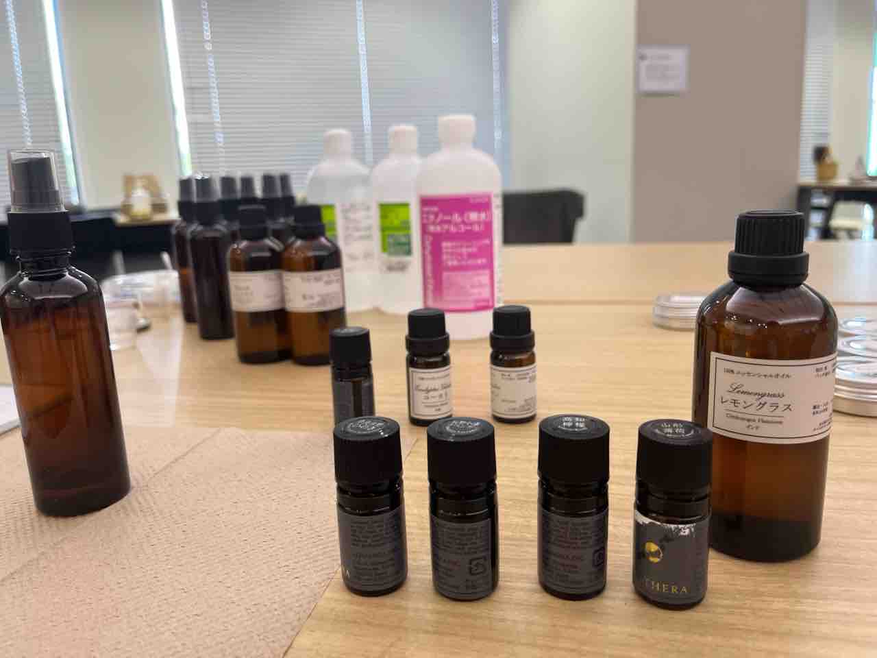 虫よけスプレーはルームスプレーにも使えるということだったので、ワークショップに参加してみました。好きなオイル5~6種類をトータルで10滴になるようビンに入れます。