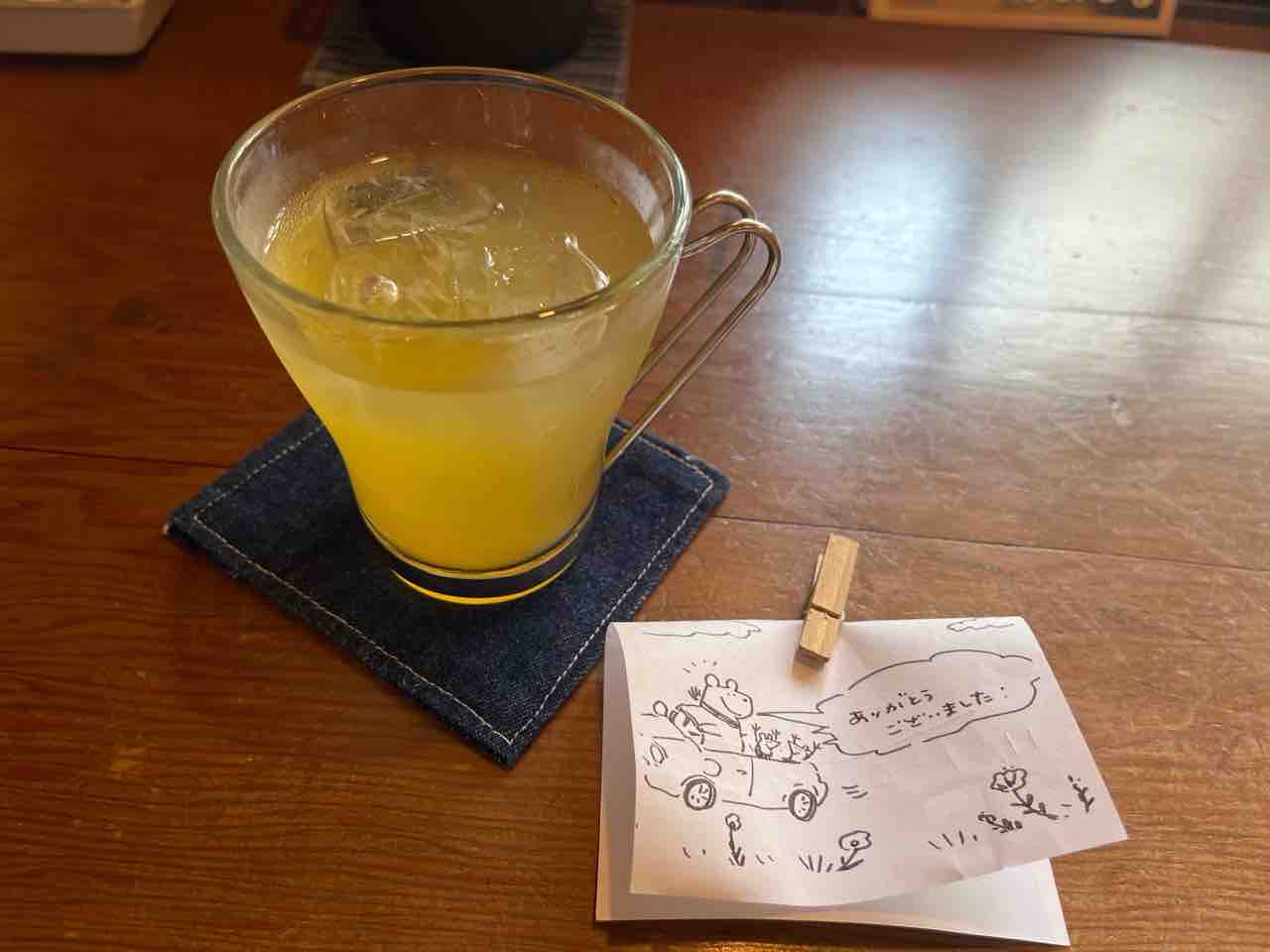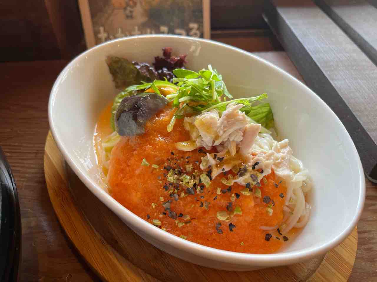 マレットごはんのメインはキャロットラペソースのかかった素麵でした。不思議な組み合わせでしたがヘルシーで美味しかったです。自家製のマンゴージュースもいただきました。