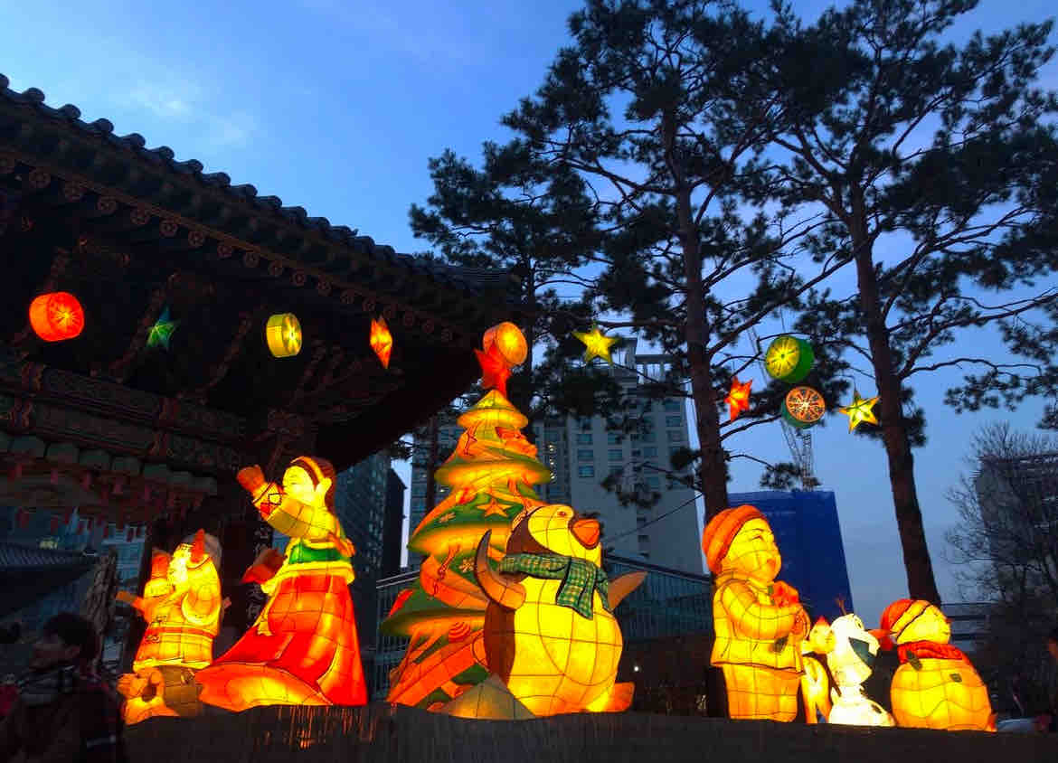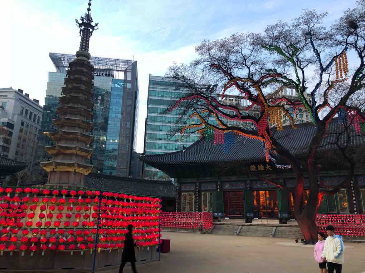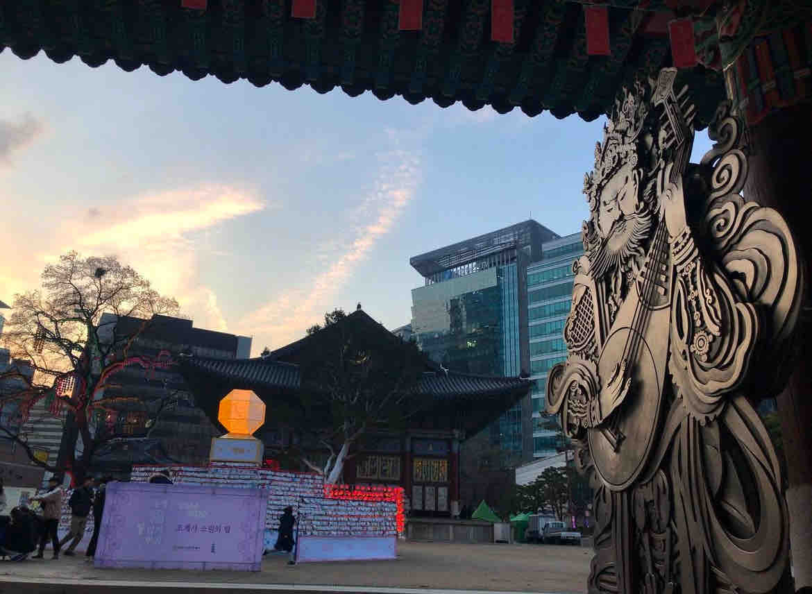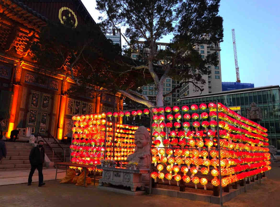 お釈迦様の誕生日に訪れると華やかな提灯飾りを見れるそうです。夜間と昼間ではお寺の雰囲気も全然違うと思うので、次回ソウルを訪れる機会があれば曹渓寺にも再訪したいと思います。