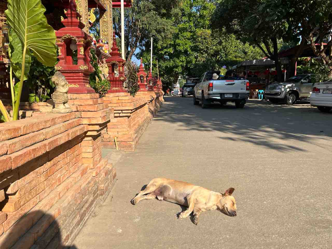 境内では犬が気持ちよさそうに寝ていました。