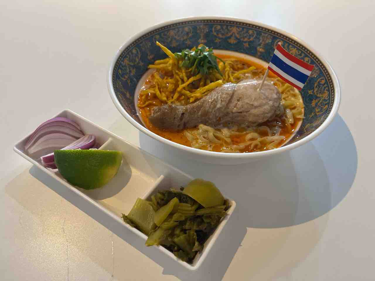 カオソーイは茹でた中華麺と揚げたカリカリの麺にココナッツミルクベースのカレースープがかかっているタイ風カレーラーメンのような料理です。