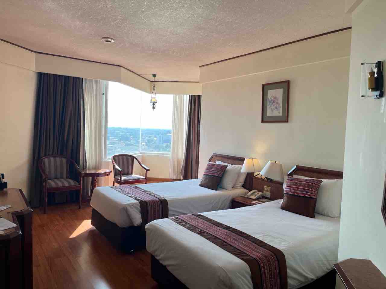 10分程度でホテルに到着。今回宿泊したのはドゥアンタワンホテルチェンマイで高層ホテルが立ち並ぶナイトバザール付近のエリアにあるホテルです。チェンマイのニューイヤーズイブは騒がしいと聞いていたのでホテルでは喧噪から逃れ静かに過ごしたかったのと、初日の出を部屋から見たかったので高層ホテルを選びました。