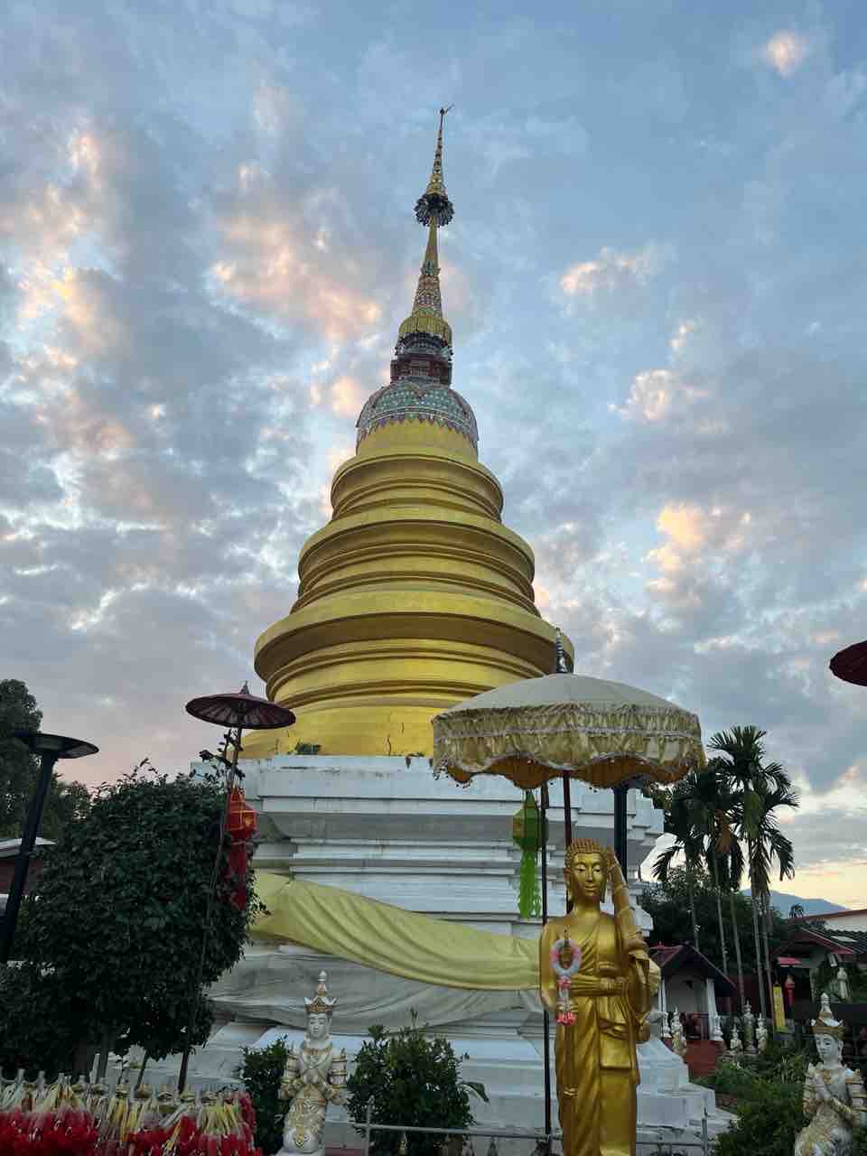 チェンマイにあるお寺は16時頃閉まるところが多いようですが、夜間拝観も受け付けていてライトアップされているお寺もあります。