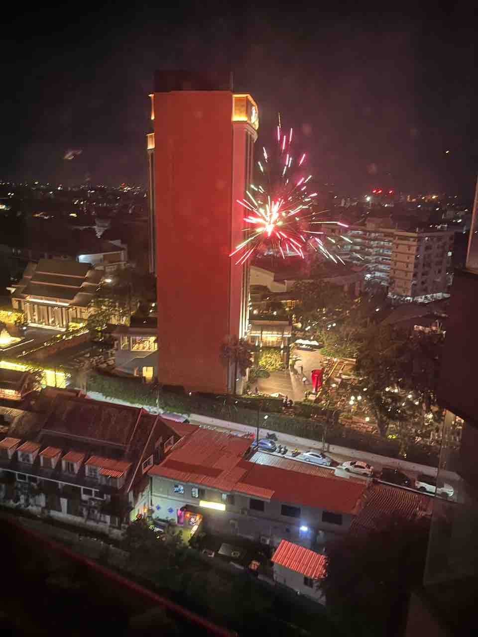 この日は大晦日。チェンマイでは新年に派手な花火が打ち上げられると聞いていたので、ホテルに帰り早めにお風呂を済ませ部屋を暗くして窓際で待機しました。