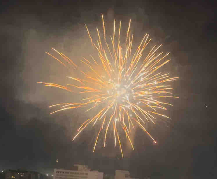 22時(日本時間の0時)頃からあちこちで花火が上がり出しました。すぐ隣のインターコンチネンタルホテルの庭でも花火が打ち上げられているのが見えました。