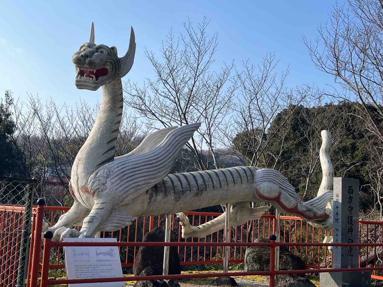 最後に駐車場にある白虎を撮影。寅にも龍にも蛇にも見える不思議な生物です。