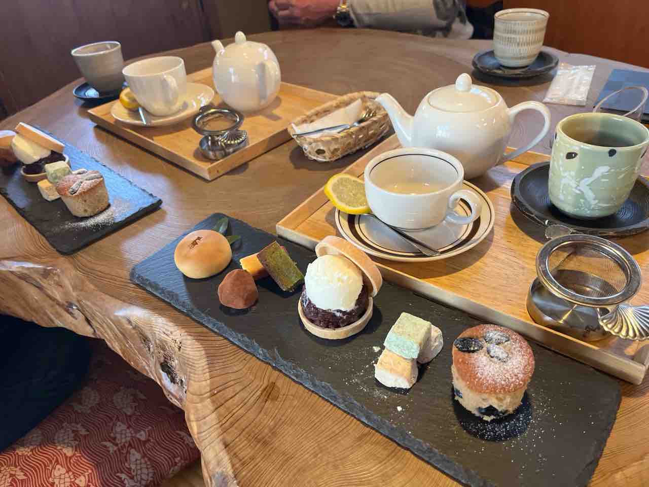 その後天理市から奈良市へ移動。富雄にあるみやけという古民家を改装した和風カフェでみやけセットという和菓子の盛り合わせをいただきました。