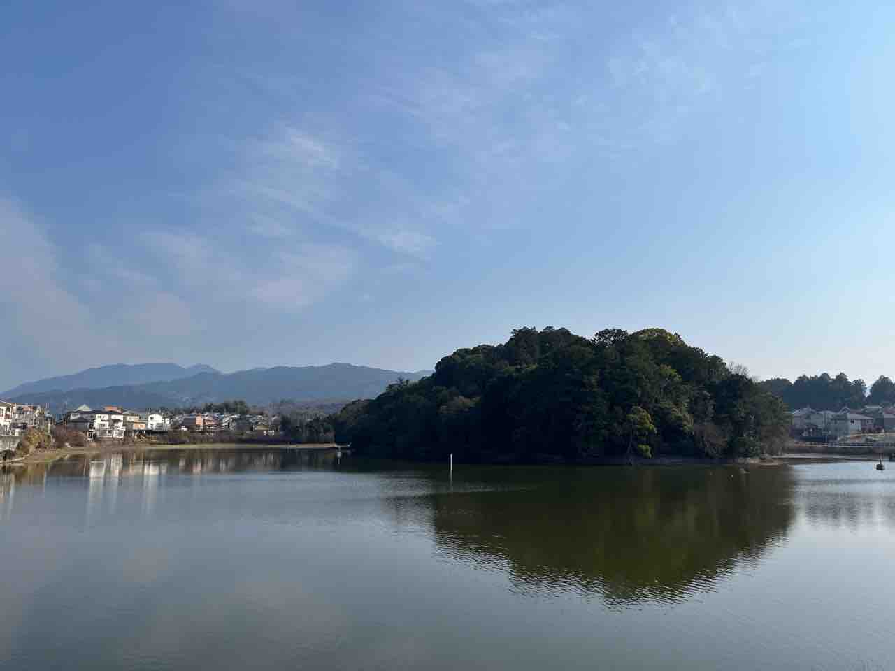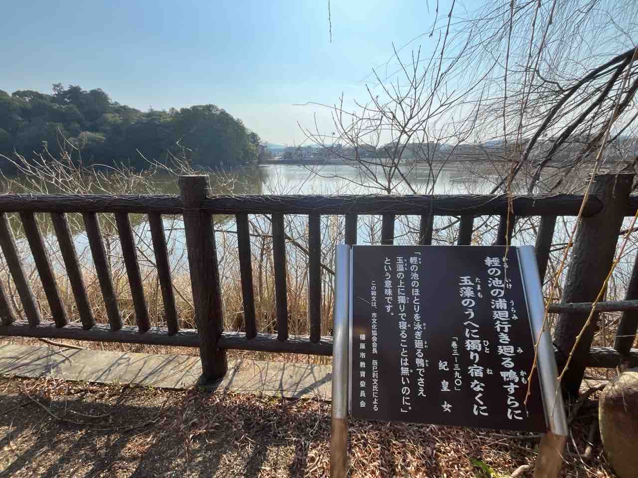 池の周りを囲むように桜の木が植わっていたので見頃に訪れたら綺麗な風景が見られると思います。池の周りの歩道には紀皇女が詠んだ和歌も。
