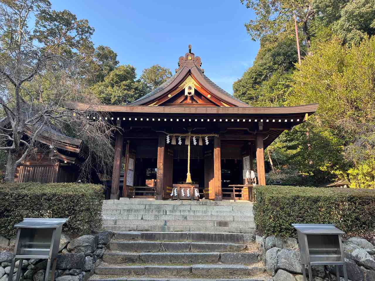 だんだん日が暮れてきたので最後に飛鳥坐神社へ。1月下旬でしたが遅すぎる新年のご挨拶を。