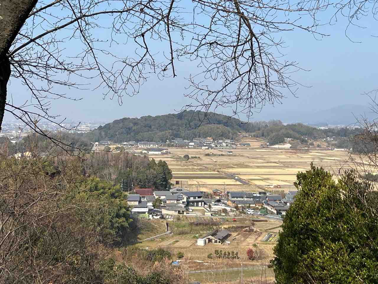 飛鳥寺や飛鳥宮跡方面。目をこらすと飛鳥坐神社の鳥居も見えました。