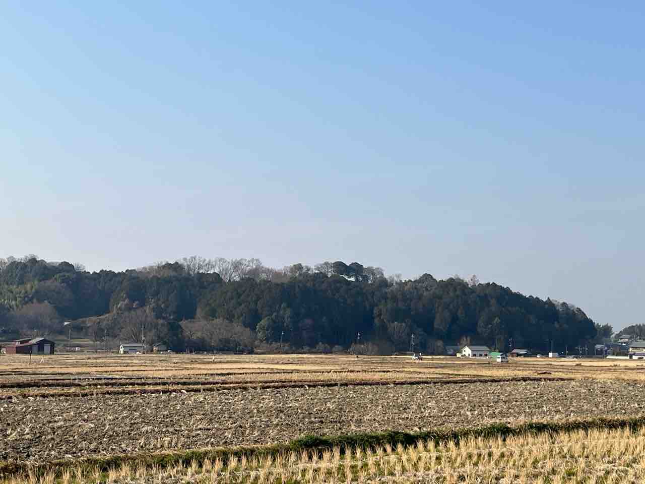 橿原神宮方面。畝傍山が見えています。
