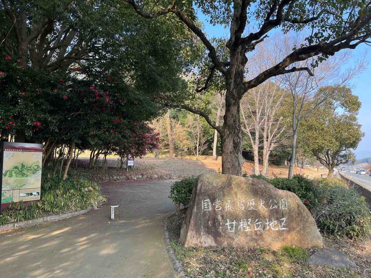 甘樫坐神社から少し歩くと甘樫丘があります。入鹿の首塚や飛鳥寺方面から眼前に広がる丘で、かつて蘇我氏の邸宅があった場所と伝えられています。