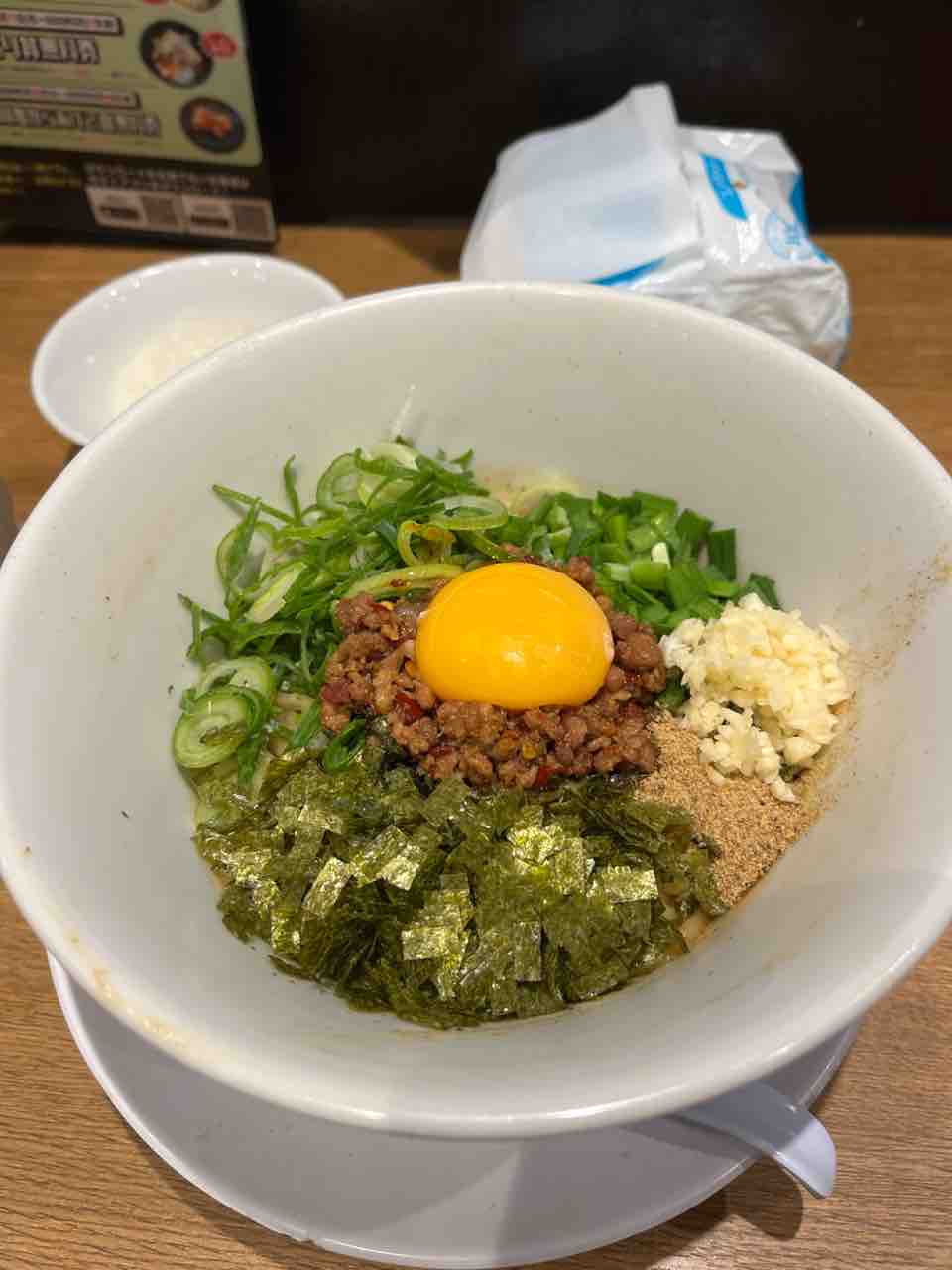 具だくさんでボリュームがあって美味しかったです。追い飯も残った具材に入れて混ぜご飯にすると二度楽しめます。堺筋本町にあるまぜそば屋さんによく通っていたので久しぶりのまぜそばが懐かしかったです。