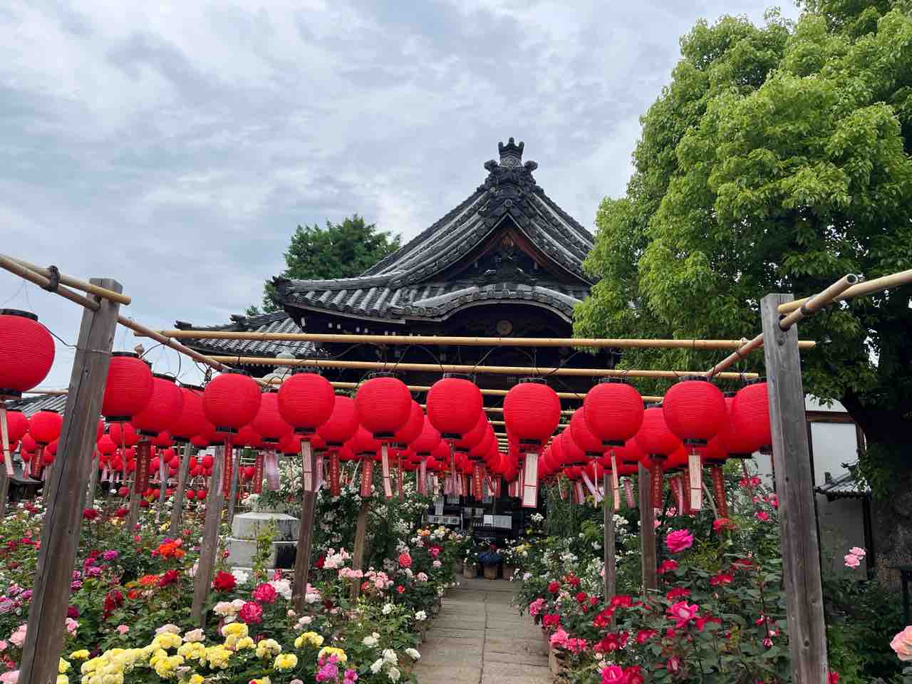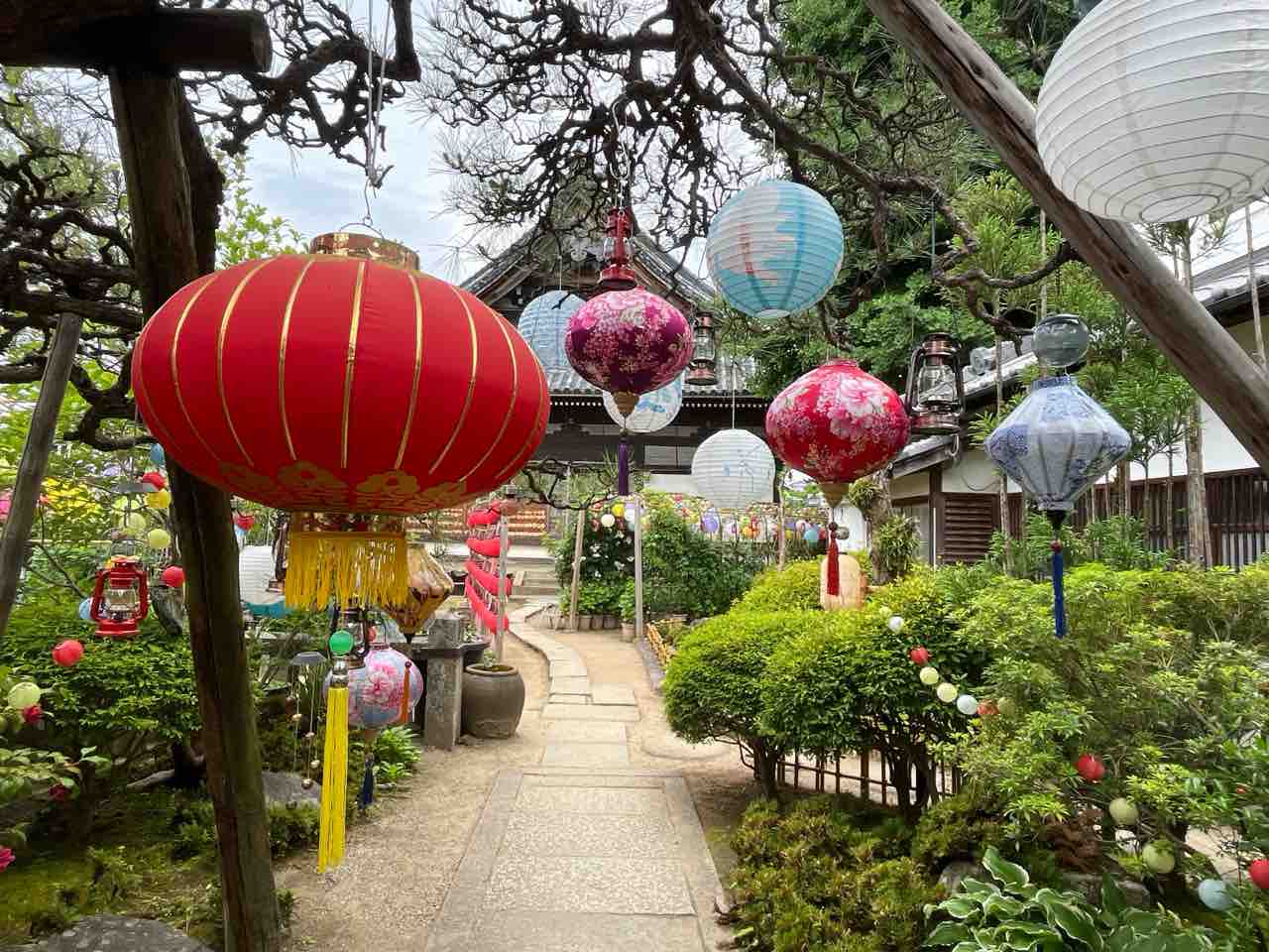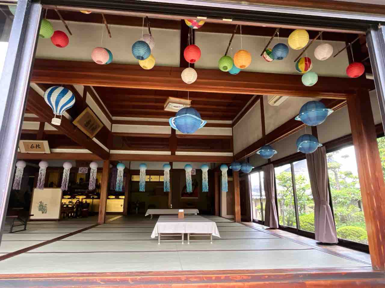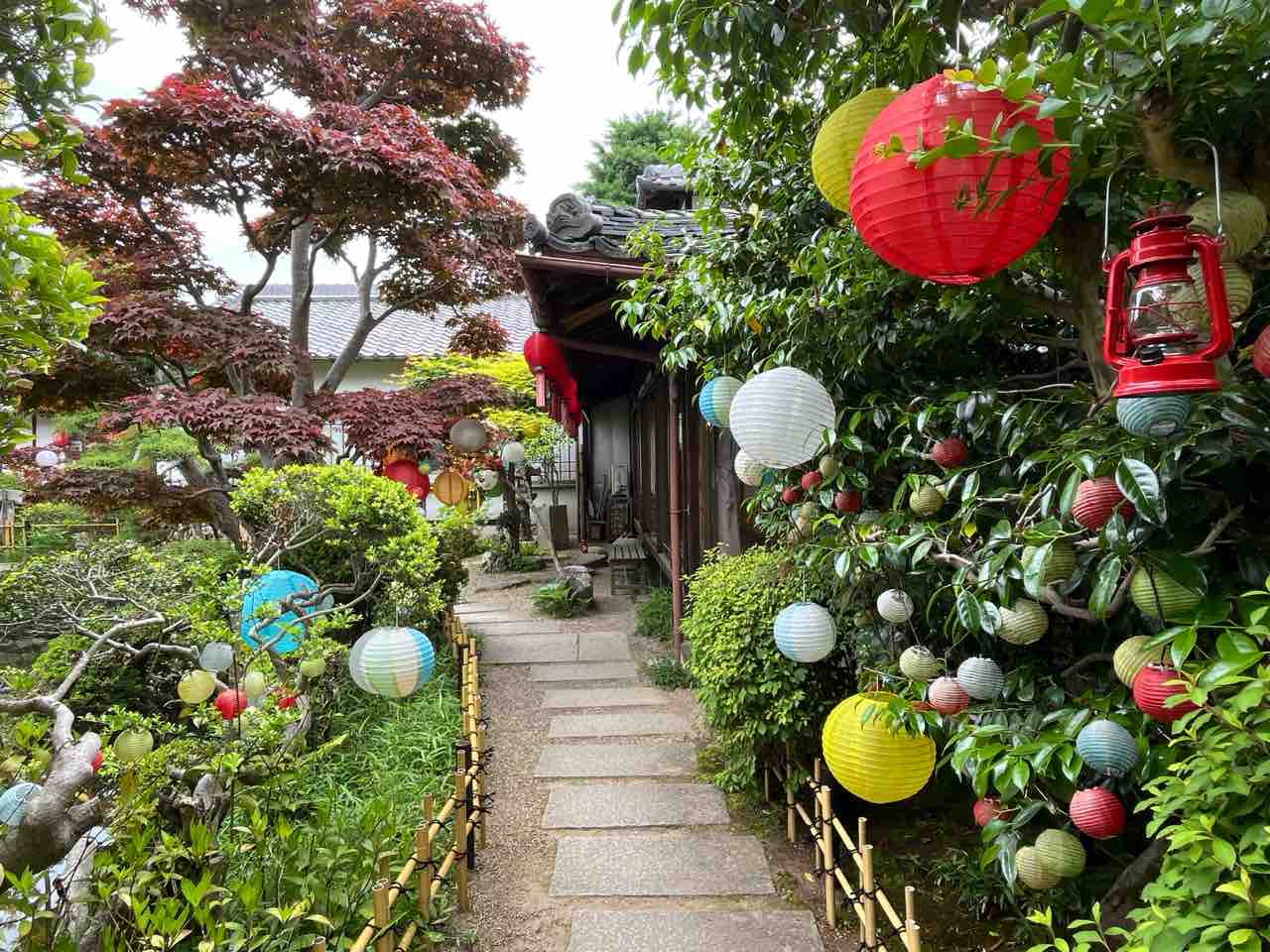境内は色とりどりの提灯で飾られており、奥まで進むと庭園や茶店もあります。茶店では庭園を見ながらデザートやランチもいただけるようです。