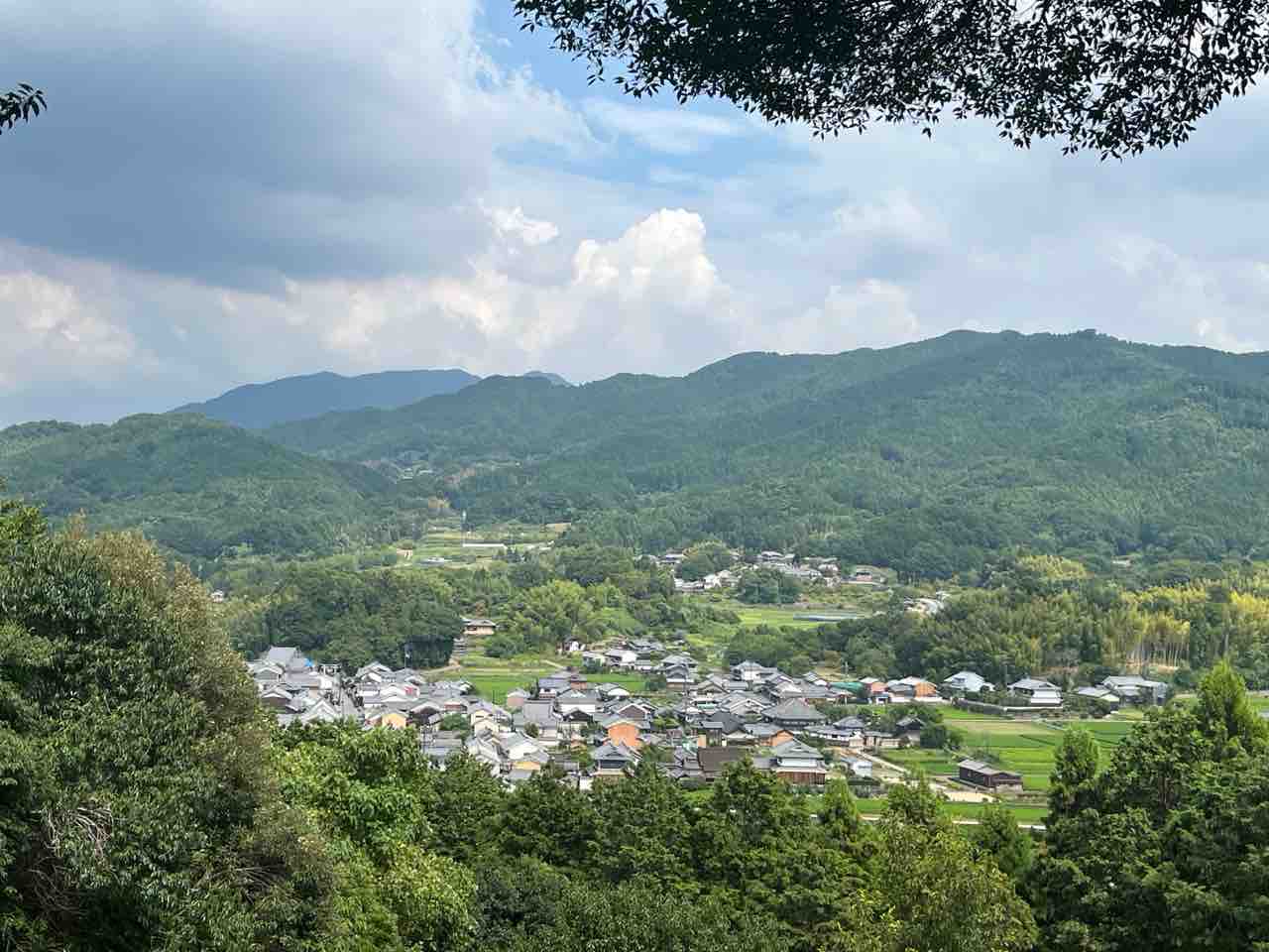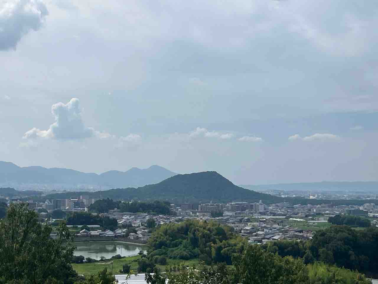 橿原市方面。畝傍山と二上山が見えています。